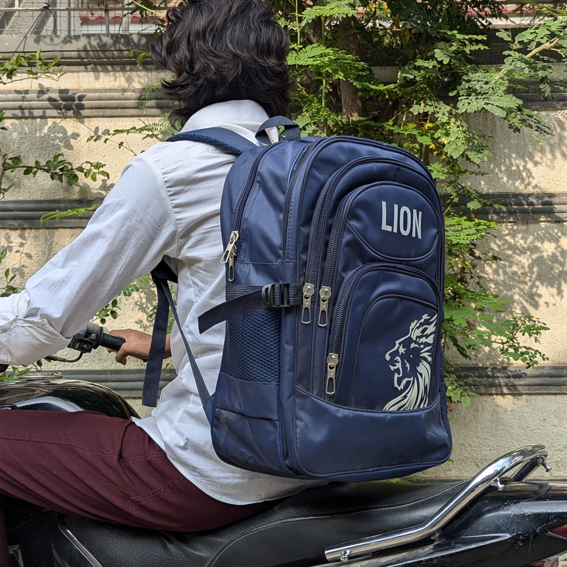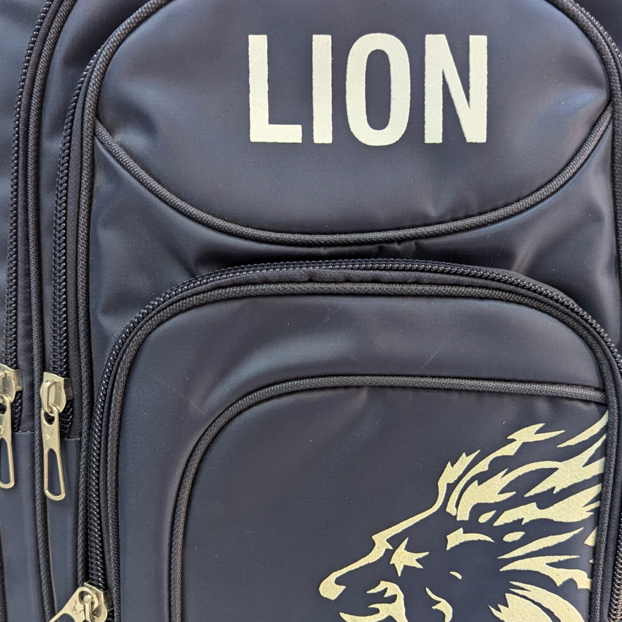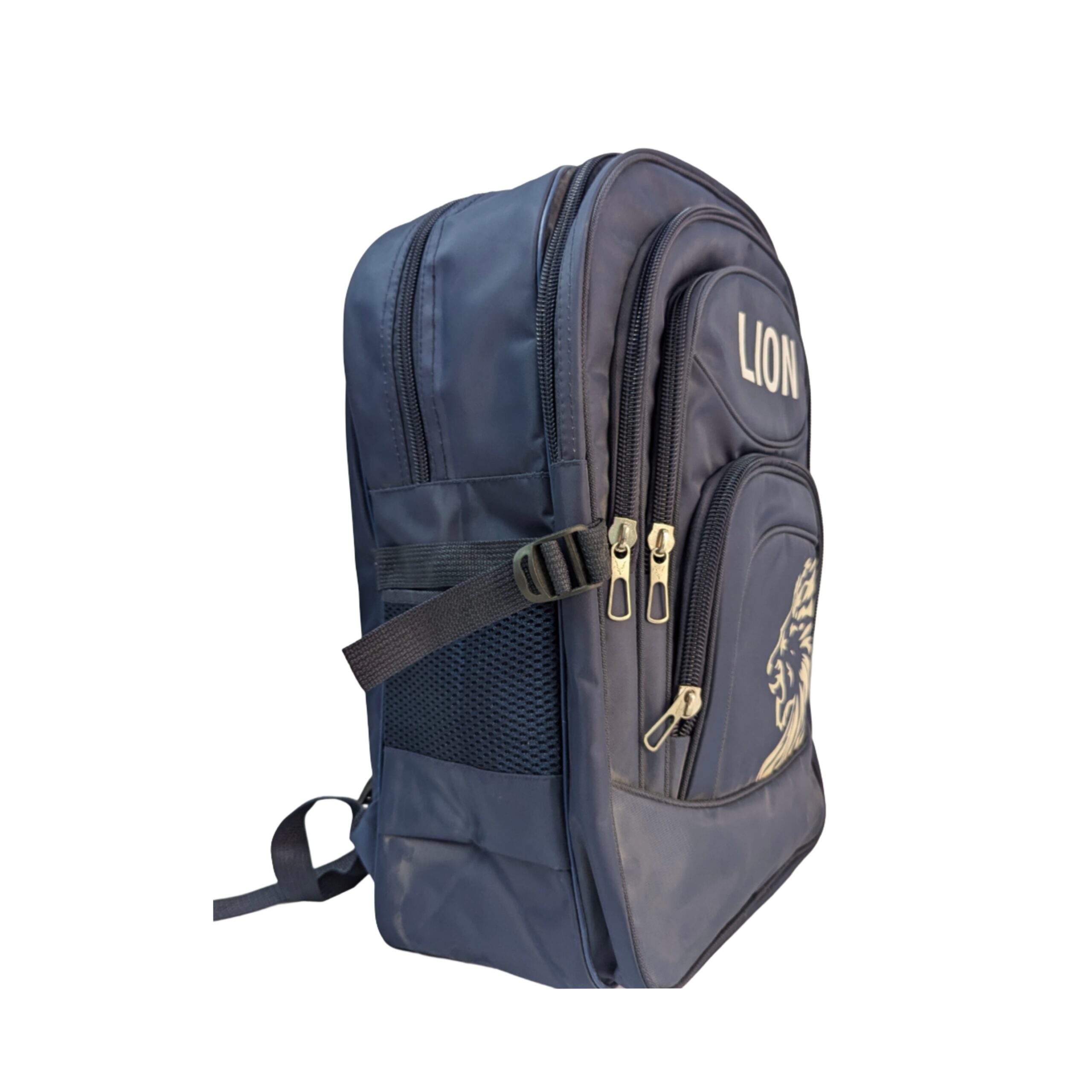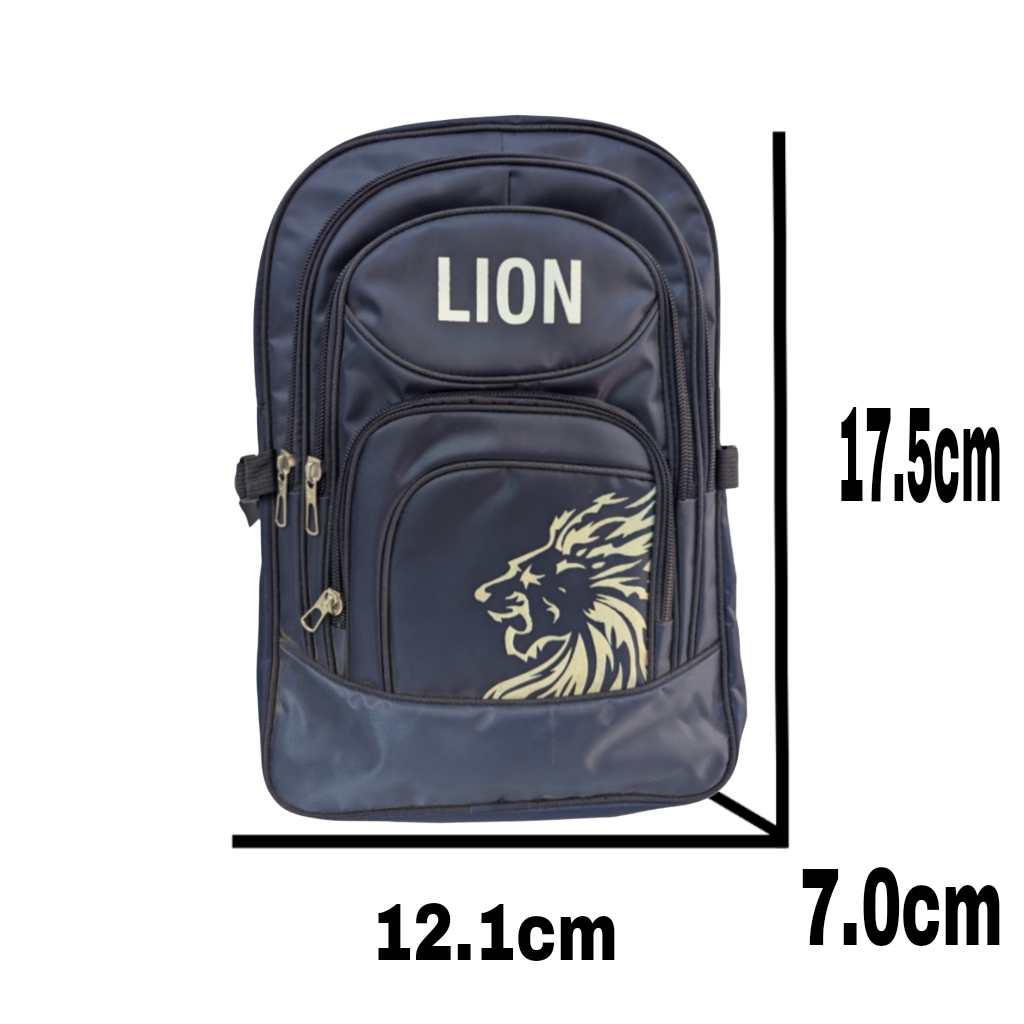 The Blue Lion Bag (18.5″ × 6.5″ × 15″) features 5 zippers and 2 side pockets, offering great space and organization. Perfect for school, travel, and daily use.